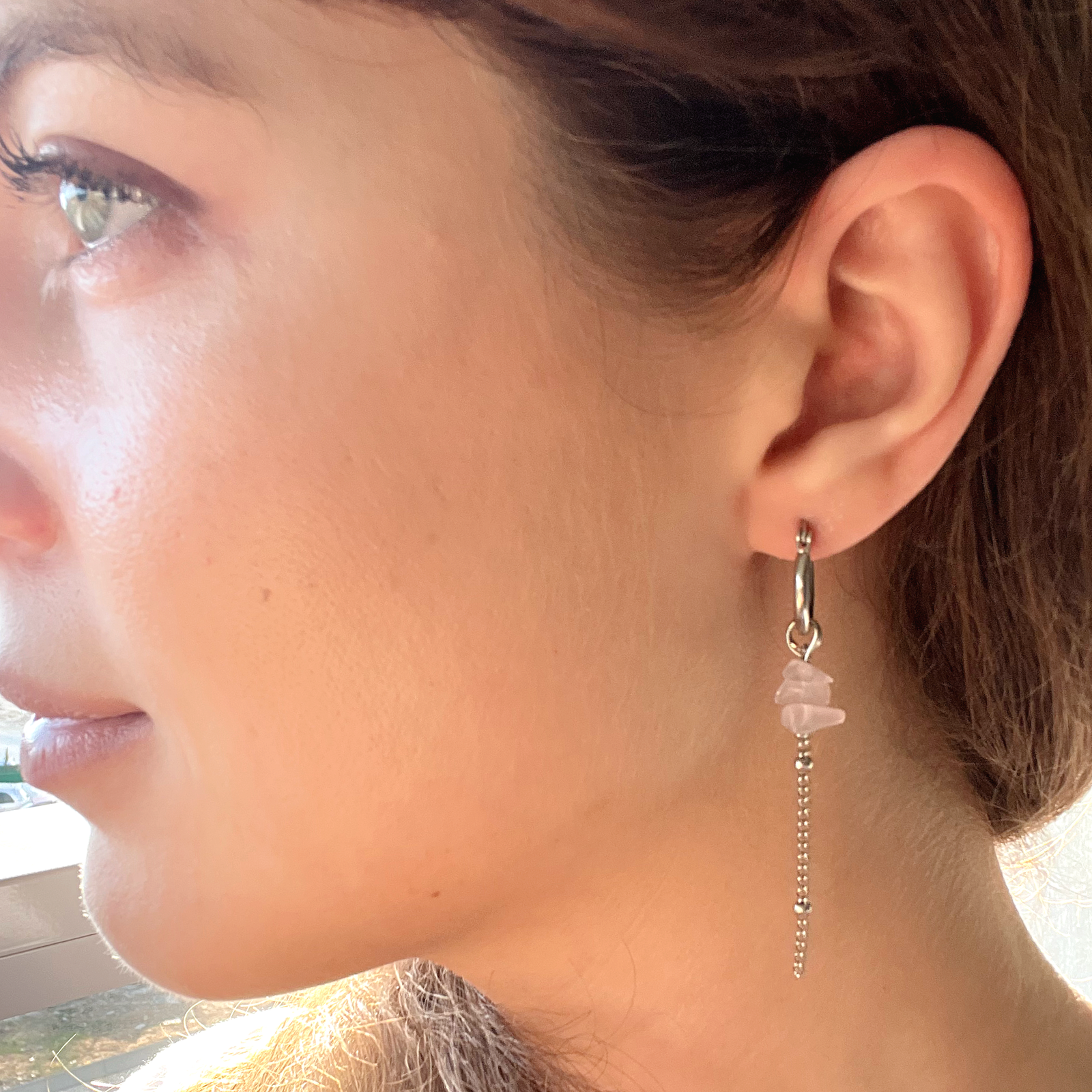 זוג עגילי צ׳ארם ״רוזי״ עם רוז קווארץ