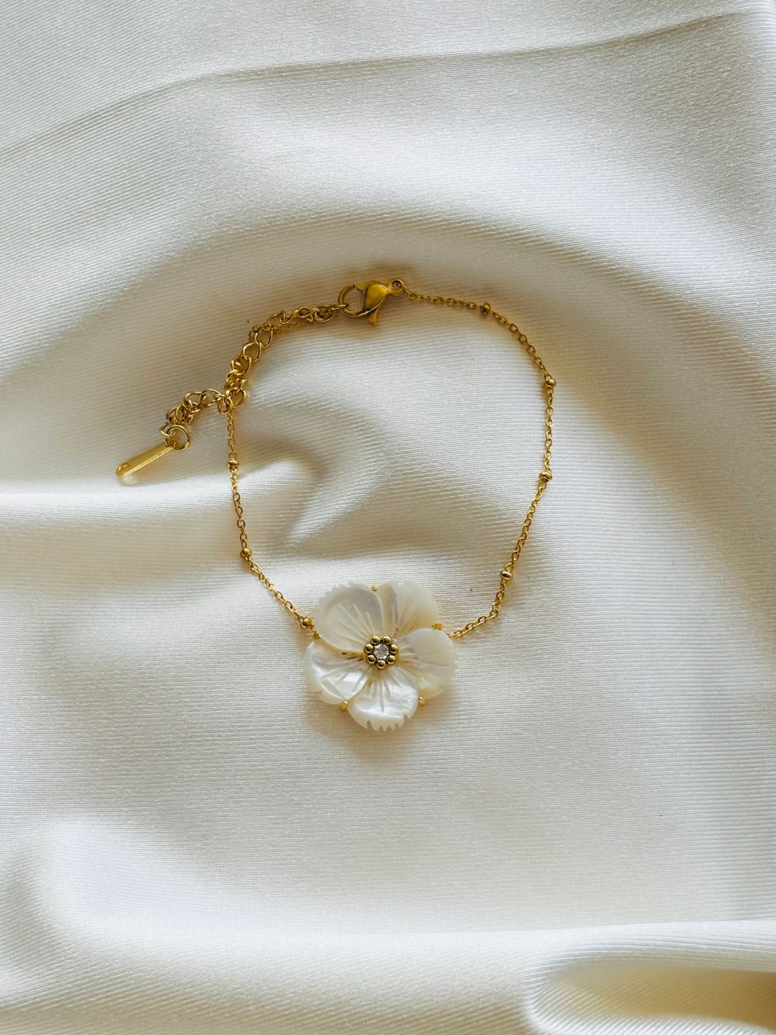 צמיד עדין המשלב אלמנט של פרח סאקורה בגוונים לבן, מעוצב באהבה ובקפידה. הפרח המבריק יוצרים ניגוד מושלם עם הגימור הזהוב של הצמיד, מה שמעניק לו מראה יוקרתי, אלגנטי ורך. הצמיד מתאים לכל אירוע, בין אם מדובר בלבוש יומיומי או באירוע חגיגי. הייחודיות והנגיעות האמנותיות, יחד עם השרשרת הדקה, הופכים את הצמיד לפריט חובה.