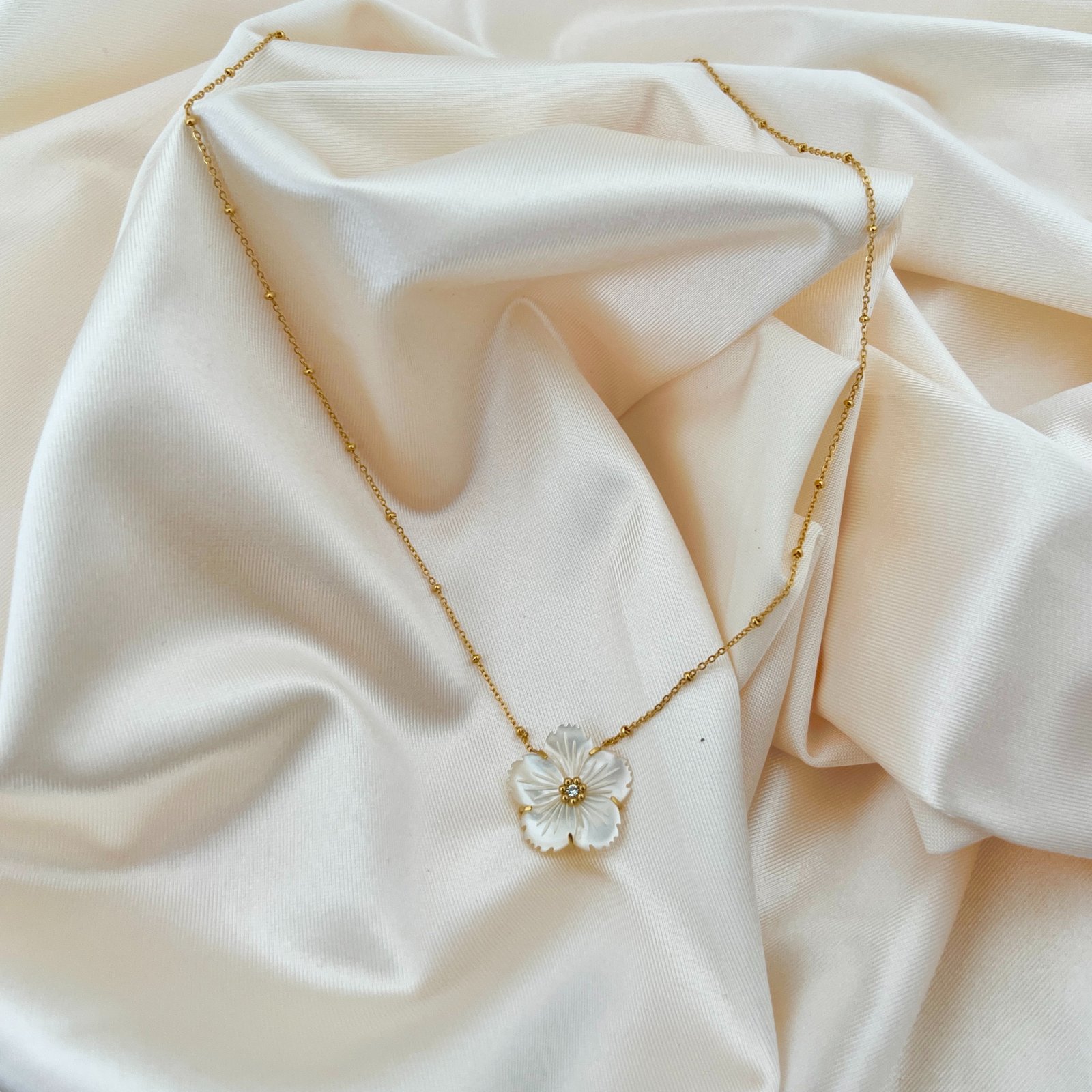 שרשרת סאקורה לבנה עדינה, מעוצבת בהשראת פרח הסאקורה היפני המסמל טוהר ויופי טבעי. התליון עשוי בצורה מדויקת של פרח לבן וזוהר, עם גימור זהוב עדין במרכזו, המעניק לו מראה אלגנטי ורך. השרשרת הזהובה מוסיפה תחושת יוקרה, בעוד העיצוב הקלאסי מאפשר לשרשרת להתאים לכל הופעה – יומיומית או מיוחדת.
