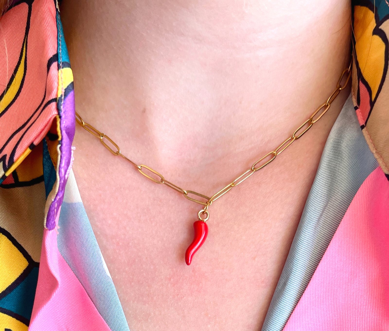 שרשרת ״׳קלואי״ עשויה פלדת אל חלד (סטיינלס סטיל), היפואלרגנית המתאימה לנשים עם עור רגיש.