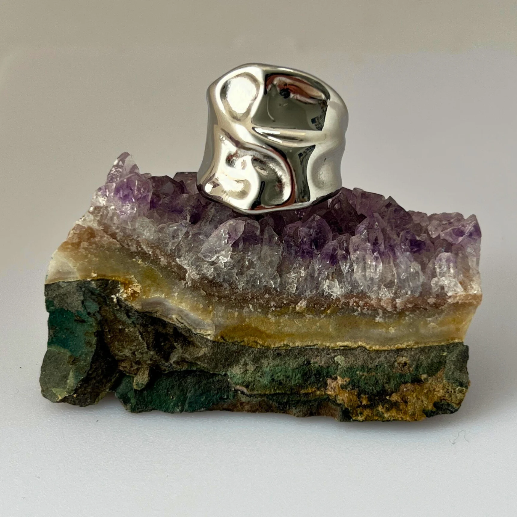 טבעת סטייטמנט צ’אנקית בעיצוב מתפתל וגולש שנותן תחושה של מתכת נוזלית שעוטפת את האצבע. היא עשויה סטיינלס סטיל היפואלרגני, עמידה במים ובשחיקה, ומגיעה בבחירה בין גוון כסף מבריק לבין ציפוי 18k gold PVD זהוב וחמים ששומר על הברק לאורך זמן. בזכות הרוחב והנוכחות שלה היא מושלמת כטבעת סטייטמנט בודדת שמושכת את כל הפוקוס, ומשתלבת מעולה עם לוקים מינימליסטיים ונקיים.